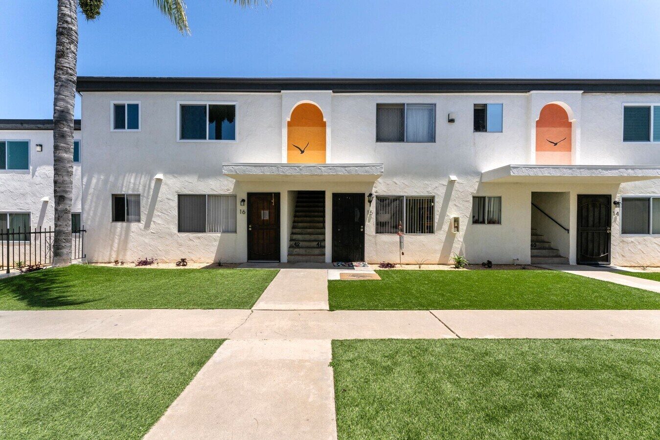 Sarah hand selected 27 colors and bird motifs for thirty distinct accent locations throughout the property. These elements tied in the “retro surf” branding of the remodeled building and created a visual extension of Sarah’s mural throughout the property. From base stucco color, to trim accents throughout the property, Sarah helped maintain a cohesive color story.