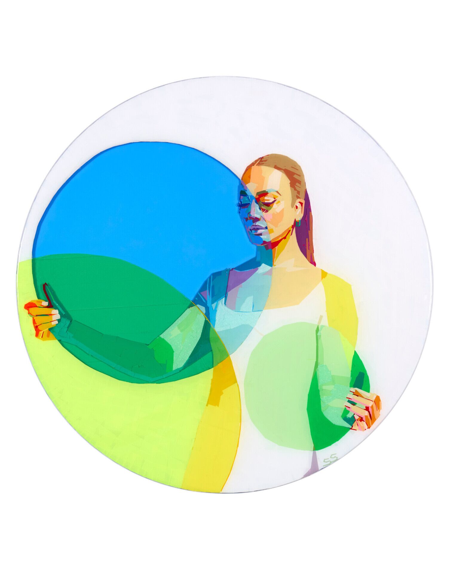 The ‘Integration Series’ depicts the illusion of overlapping transparent colors, inviting viewers to explore the depth and vibrancy of their own multifaceted identities.